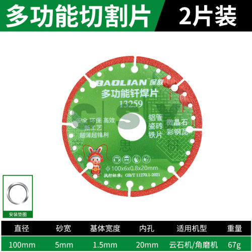 "保联多功能切割片瓷砖专用大理石切铁王玻璃岩板石材金刚石彩钢瓦-新型多功能钎焊切片100mm(2片)"商品可能已被商家删除,您可查看其他相似商品!