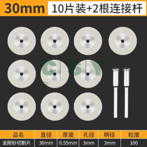 "保联金刚砂切割片电磨小切片小锯片美缝清缝玻璃玉石抛光砂轮磨片-30mm普通型【10片+2接杆】"商品可能已被商家删除,您可查看其他相似商品!