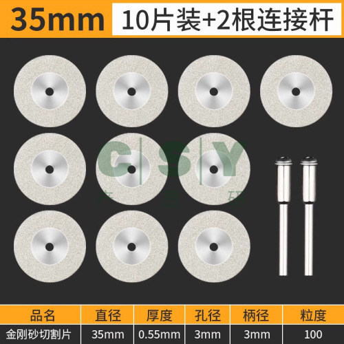 "保联金刚砂切割片电磨小切片小锯片美缝清缝玻璃玉石抛光砂轮磨片-35mm普通型【10片+2接杆】"商品可能已被商家删除,您可查看其他相似商品!