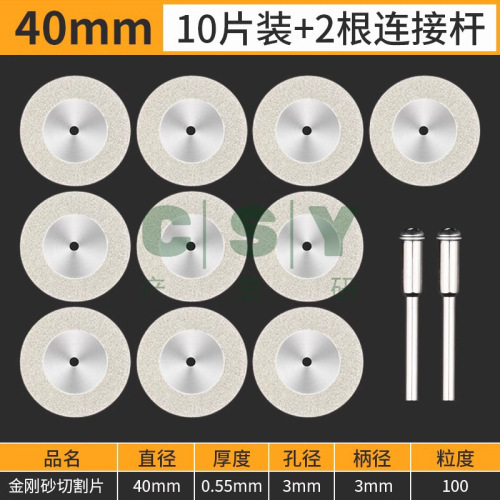 "保联金刚砂切割片电磨小切片小锯片美缝清缝玻璃玉石抛光砂轮磨片-40mm普通型【10片+2接杆】"商品可能已被商家删除,您可查看其他相似商品!