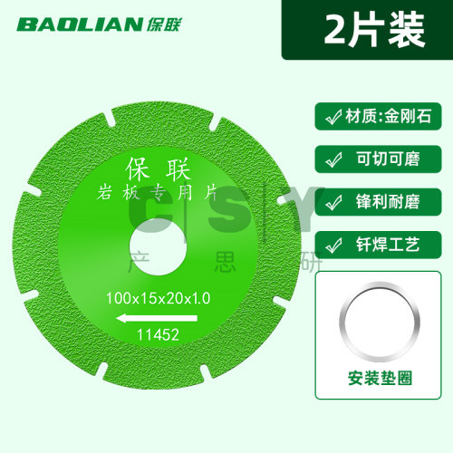 "保联岩板专用切割片磨片陶瓷玻璃大理石瓷砖磨片锯片打磨修边倒角-岩板切割片100mm砂宽15mm【2片装】"商品可能已被商家删除,您可查看其他相似商品!