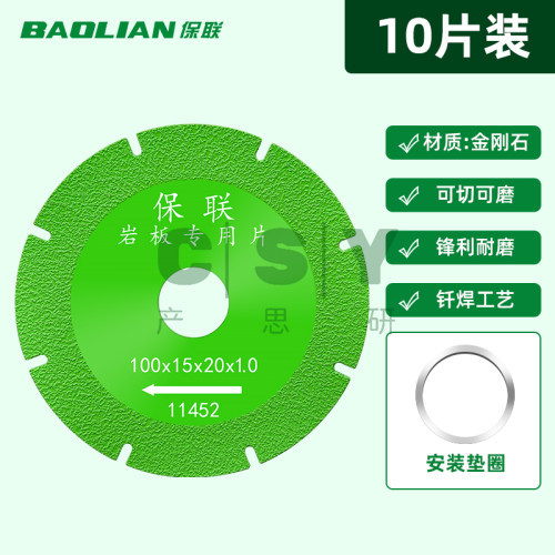 "保联岩板专用切割片磨片陶瓷玻璃大理石瓷砖磨片锯片打磨修边倒角-岩板切割片100mm砂宽15mm【10片装】"商品可能已被商家删除,您可查看其他相似商品!