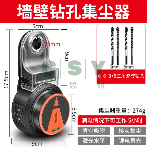 "保联电动钻孔集尘器家用电钻头电锤除尘器墙面吸尘小型清灰吸灰机-集尘器+【6+6+8+8三角瓷砖钻头】"商品可能已被商家删除,您可查看其他相似商品!