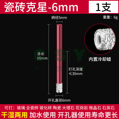 "瓷砖打孔钻头全瓷玻璃玻化砖大理石开孔器干打不加水陶瓷专用大全-升级加厚砂6mm1支钜惠装"商品可能已被商家删除,您可查看其他相似商品!