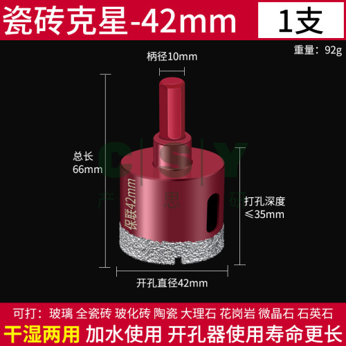 "瓷砖打孔钻头全瓷玻璃玻化砖大理石开孔器干打不加水陶瓷专用大全-升级加厚砂42mm1支"商品可能已被商家删除,您可查看其他相似商品!