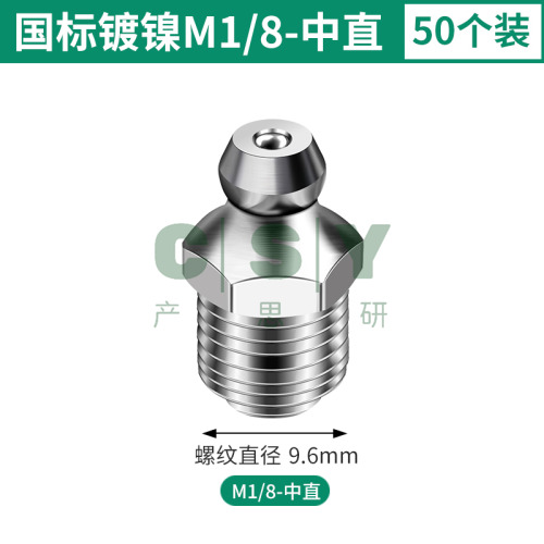 "国标挖机黄油嘴黄油枪通用接头手动枪嘴头油枪黄油咀油嘴配件注油-国标镀镍M1/8-中直(50个装)"商品可能已被商家删除,您可查看其他相似商品!