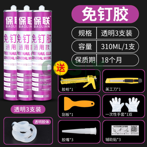 "免钉胶强力胶瓷砖免打孔粘胶透明玻璃胶水置物架踢脚线木工专用-通用型3支透明【环保强力】送1套工具"商品可能已被商家删除,您可查看其他相似商品!