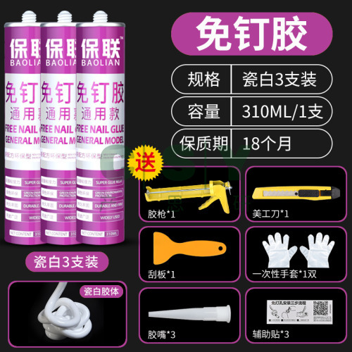 "免钉胶强力胶瓷砖免打孔粘胶透明玻璃胶水置物架踢脚线木工专用-通用型3支瓷白【环保强力】送1套工具"商品可能已被商家删除,您可查看其他相似商品!