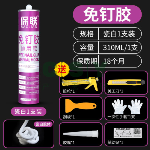 "免钉胶强力胶瓷砖免打孔粘胶透明玻璃胶水置物架踢脚线木工专用-通用型1支瓷白【环保强力】送1套工具"商品可能已被商家删除,您可查看其他相似商品!