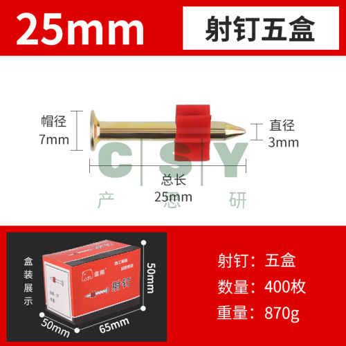 "硬质水泥钉射钉钢钉广告钉挂画钉墙钉空调钉枪钉带胶套22-52mm-射钉27# 3×25mm(五盒400粒)"商品可能已被商家删除,您可查看其他相似商品!
