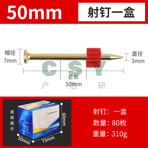 "硬质水泥钉射钉钢钉广告钉挂画钉墙钉空调钉枪钉带胶套22-52mm-射钉52# 3×50mm(一盒80粒)"商品可能已被商家删除,您可查看其他相似商品!