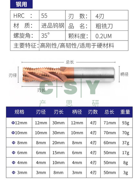 "保联55度3刃钨钢玉米铣刀3刃粗皮刀开粗铝用粗皮波刃波纹粗铣刀-钢用 12*30*4T*71L"商品可能已被商家删除,您可查看其他相似商品!