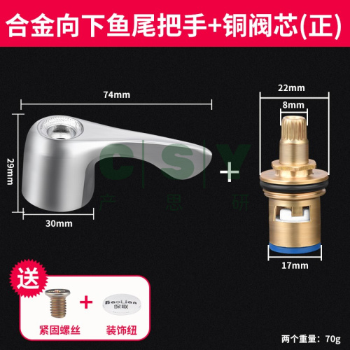 "水龙头阀芯阀门芯阀全铜单冷厨房洗手池把手开关把手手柄配件通用-【单冷】合金鱼尾把手+铜阀芯正(送螺丝和饰纽)"商品可能已被商家删除,您可查看其他相似商品!