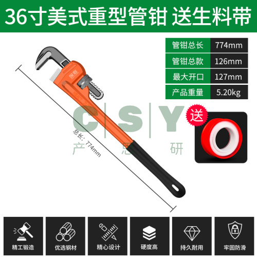 "水管钳 欧式重型管钳扳手 两用快速多功能水暖家用喉钳大号水管钳-美式36寸重型款【开口113MM】"商品可能已被商家删除,您可查看其他相似商品!