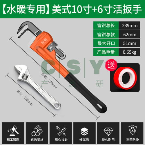 "水管钳 欧式重型管钳扳手 两用快速多功能水暖家用喉钳大号水管钳-【水暖专用】美式10寸重型款+6寸活扳手"商品可能已被商家删除,您可查看其他相似商品!