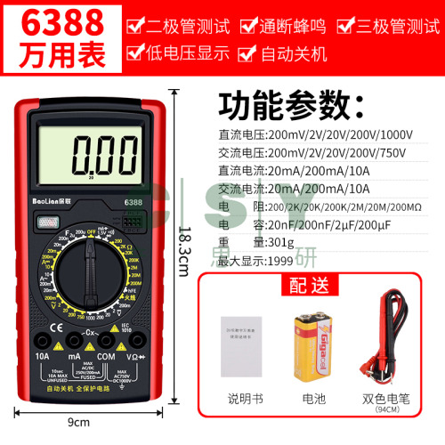 "万用表数字高精度电子防烧小型便捷式防护多功能数显电工维修测试-【经济实惠款】6388万用表 标配 手动量程"商品可能已被商家删除,您可查看其他相似商品!
