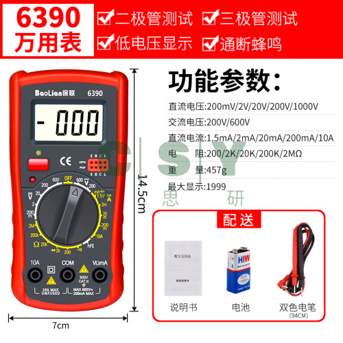 "万用表数字高精度电子防烧小型便捷式防护多功能数显电工维修测试-【经济实惠款】6390万用表 标配 手动量程"商品可能已被商家删除,您可查看其他相似商品!