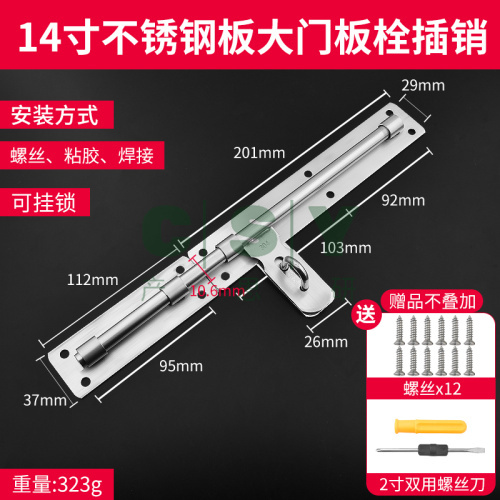 "不锈钢插销室内卫生间插销锁门扣门锁扣老式门销门窗防盗小插销锁-14寸【304不锈钢】大门门 可挂锁(送螺丝+螺丝刀)"商品可能已被商家删除,您可查看其他相似商品!
