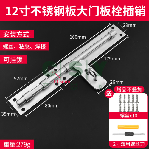 "不锈钢插销室内卫生间插销锁门扣门锁扣老式门销门窗防盗小插销锁-12寸【304不锈钢】大门门 可挂锁(送螺丝+螺丝刀)"商品可能已被商家删除,您可查看其他相似商品!