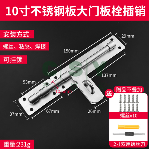 "不锈钢插销室内卫生间插销锁门扣门锁扣老式门销门窗防盗小插销锁-10寸【304不锈钢】大门门 可挂锁(送螺丝+螺丝刀)"商品可能已被商家删除,您可查看其他相似商品!