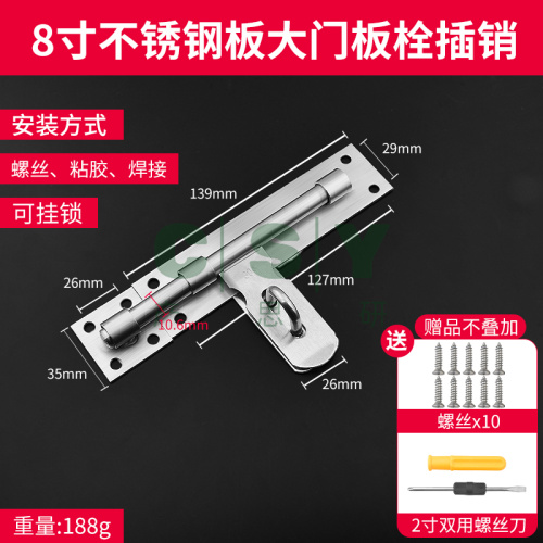 "不锈钢插销室内卫生间插销锁门扣门锁扣老式门销门窗防盗小插销锁-8寸【304不锈钢】大门门 可挂锁(送螺丝+螺丝刀)"商品可能已被商家删除,您可查看其他相似商品!