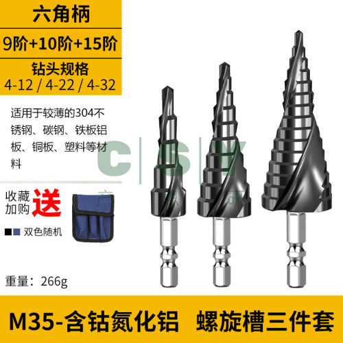 "宝塔钻头六角阶梯钻金属开孔器多功能扩孔梯形锥形孔钢铁打孔超硬-M35含钴【12/22/32】螺旋槽 三件套"商品可能已被商家删除,您可查看其他相似商品!