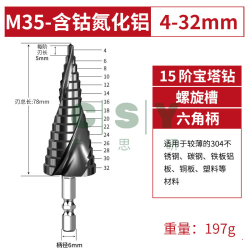 "宝塔钻头六角阶梯钻金属开孔器多功能扩孔梯形锥形孔钢铁打孔超硬-M35含钴【一钻多用】 螺旋槽 4-32mm十五阶"商品可能已被商家删除,您可查看其他相似商品!