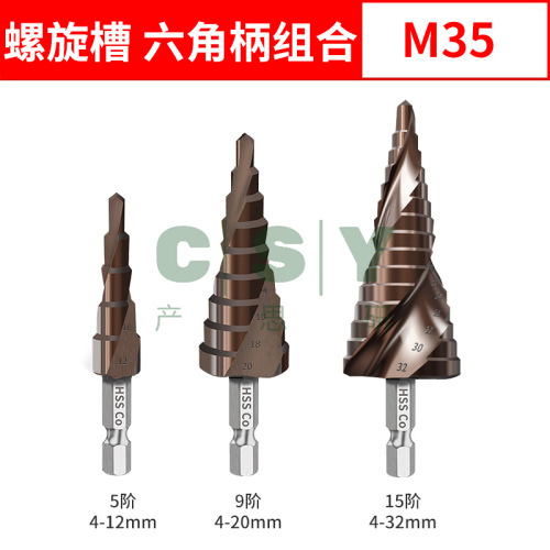 "宝塔钻头六角阶梯钻金属开孔器多功能扩孔梯形锥形孔钢铁打孔超硬-M35螺旋槽三件套"商品可能已被商家删除,您可查看其他相似商品!