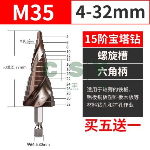 "宝塔钻头六角阶梯钻金属开孔器多功能扩孔梯形锥形孔钢铁打孔超硬-M35六角柄【4-32mm 15阶】螺旋槽"商品可能已被商家删除,您可查看其他相似商品!