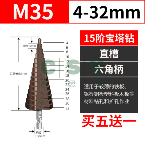"宝塔钻头六角阶梯钻金属开孔器多功能扩孔梯形锥形孔钢铁打孔超硬-M35六角柄【4-32mm 15阶】直槽"商品可能已被商家删除,您可查看其他相似商品!