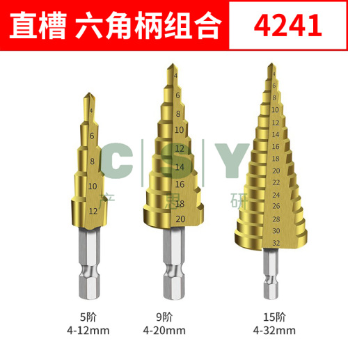 "宝塔钻头六角阶梯钻金属开孔器多功能扩孔梯形锥形孔钢铁打孔超硬-4241直槽三件套"商品可能已被商家删除,您可查看其他相似商品!