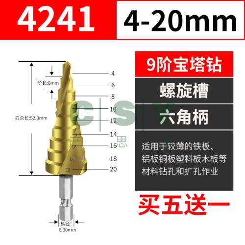 "宝塔钻头六角阶梯钻金属开孔器多功能扩孔梯形锥形孔钢铁打孔超硬-4241六角柄【4-20mm 9阶】螺旋槽"商品可能已被商家删除,您可查看其他相似商品!