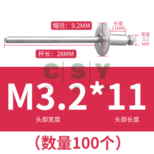 "大帽铆钉铝制圆头大帽沿拉铆钉抽芯铆钉大头拉钉大扁头汽车拉铆钉-大帽拉钉3.2*11(100支)"商品可能已被商家删除,您可查看其他相似商品!