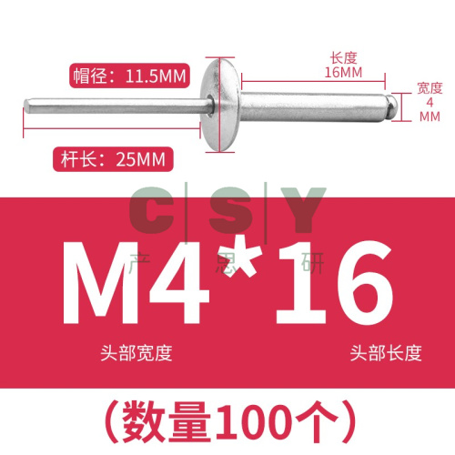 "大帽铆钉铝制圆头大帽沿拉铆钉抽芯铆钉大头拉钉大扁头汽车拉铆钉-大帽拉钉4*16(100支)"商品可能已被商家删除,您可查看其他相似商品!