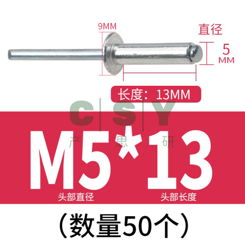 "大帽铆钉铝制圆头大帽沿拉铆钉抽芯铆钉大头拉钉大扁头汽车拉铆钉-M5*13(50支)"商品可能已被商家删除,您可查看其他相似商品!