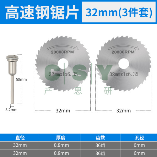"高速钢锯片小锯片套装电磨机切割片小圆锯片锯木头电钻圆锯片-高速钢锯片32mm【3件套】2片1杆"商品可能已被商家删除,您可查看其他相似商品!