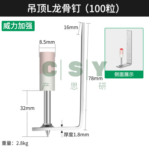 "炮钉迷你射钉吊顶一体钉管卡消防钉打钉枪神器子弹钉子混凝土专用-【双基药强威力】吊顶L龙骨钉100枚-大枪"商品可能已被商家删除,您可查看其他相似商品!