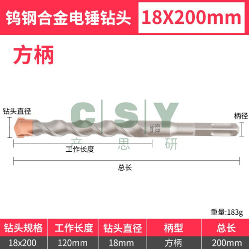 "钨钢加长冲击钻电锤钻头混凝土穿墙过墙方柄圆柄打孔开槽合金转头-方柄18*200"商品可能已被商家删除,您可查看其他相似商品!