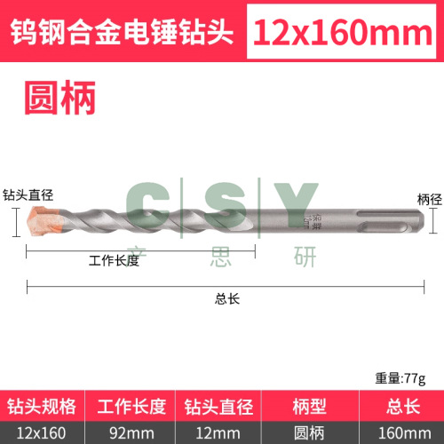 "钨钢加长冲击钻电锤钻头混凝土穿墙过墙方柄圆柄打孔开槽合金转头-圆柄12*160"商品可能已被商家删除,您可查看其他相似商品!