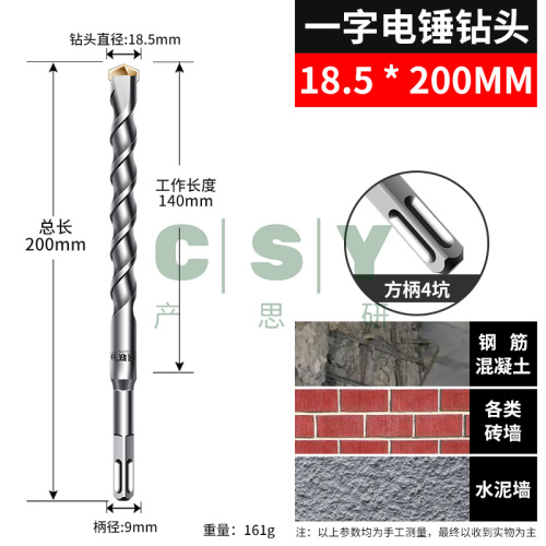 "非标冲击钻头电锤混凝土打孔两槽圆柄四坑方柄穿墙两坑水泥墙壁钻-18.5*200方柄"商品可能已被商家删除,您可查看其他相似商品!