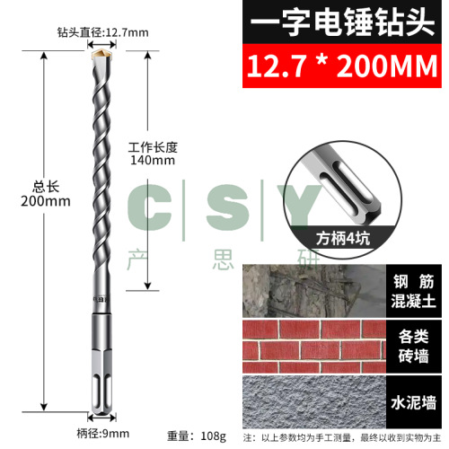 "非标冲击钻头电锤混凝土打孔两槽圆柄四坑方柄穿墙两坑水泥墙壁钻-12.7*200方柄"商品可能已被商家删除,您可查看其他相似商品!