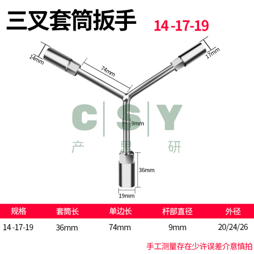 "三叉套筒扳手加长Y型多功能三角手动工具套装套管套桶摩托车扳手-【长三叉】14-17-19"商品可能已被商家删除,您可查看其他相似商品!