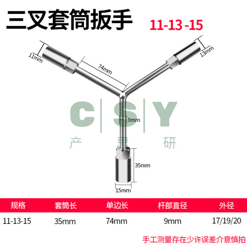 "三叉套筒扳手加长Y型多功能三角手动工具套装套管套桶摩托车扳手-【长三叉】11-13-15"商品可能已被商家删除,您可查看其他相似商品!