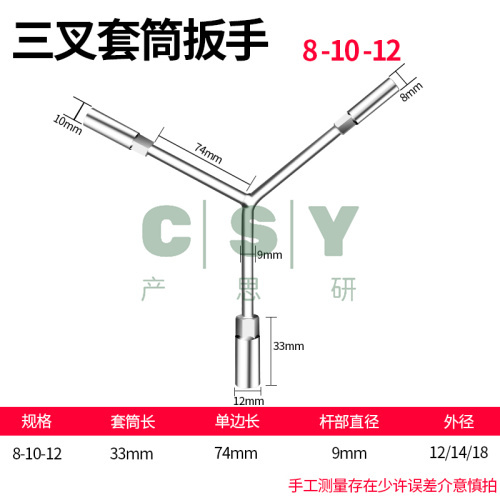 "三叉套筒扳手加长Y型多功能三角手动工具套装套管套桶摩托车扳手-【长三叉】8-10-12"商品可能已被商家删除,您可查看其他相似商品!