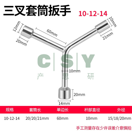 "三叉套筒扳手加长Y型多功能三角手动工具套装套管套桶摩托车扳手-【短三叉】10-12-14"商品可能已被商家删除,您可查看其他相似商品!