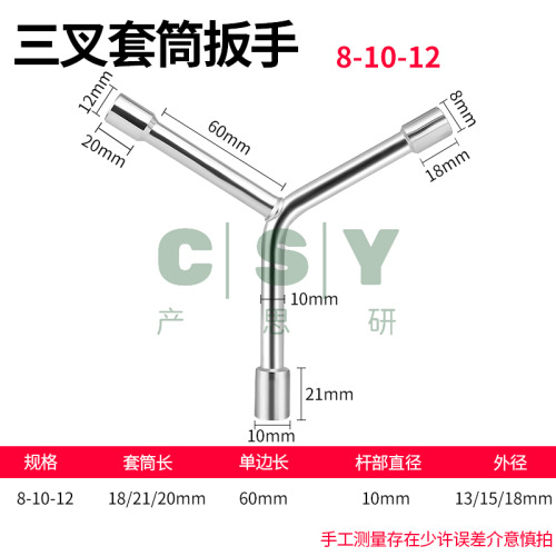 "三叉套筒扳手加长Y型多功能三角手动工具套装套管套桶摩托车扳手-【短三叉】8-10-12"商品可能已被商家删除,您可查看其他相似商品!