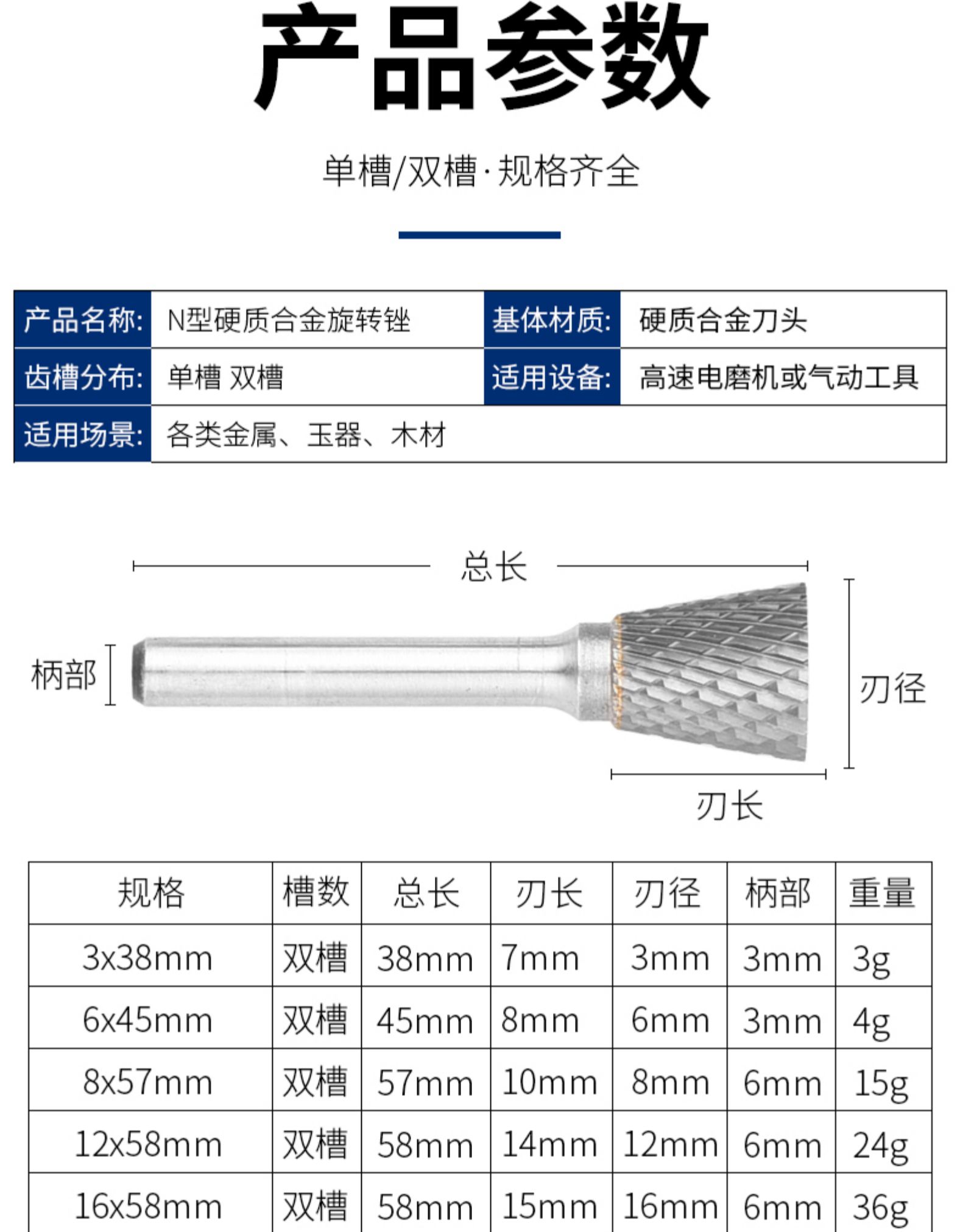 "保联硬质合金旋转锉 打磨磨头 钨钢磨头 铣刀 雕刻铣刀N型倒锥形-双槽NX0810M06(8毫米)"商品可能已被商家删除,您可查看其他相似商品!