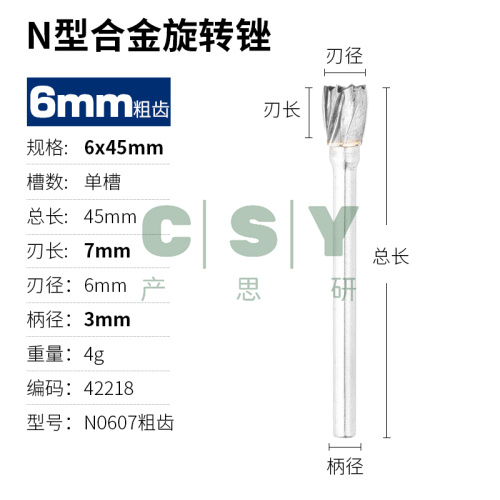 "保联硬质合金旋转锉 打磨磨头 钨钢磨头 铣刀 雕刻铣刀N型倒锥形-单槽N0607M03 粗齿(6毫米)"商品可能已被商家删除,您可查看其他相似商品!