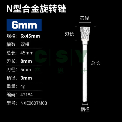 "保联硬质合金旋转锉 打磨磨头 钨钢磨头 铣刀 雕刻铣刀N型倒锥形-双槽端刃NXE0607M03(3毫米)"商品可能已被商家删除,您可查看其他相似商品!