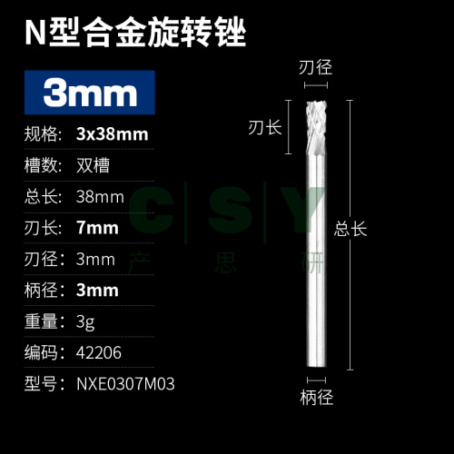 "保联硬质合金旋转锉 打磨磨头 钨钢磨头 铣刀 雕刻铣刀N型倒锥形-双槽端刃NXE0307M03(3毫米)"商品可能已被商家删除,您可查看其他相似商品!